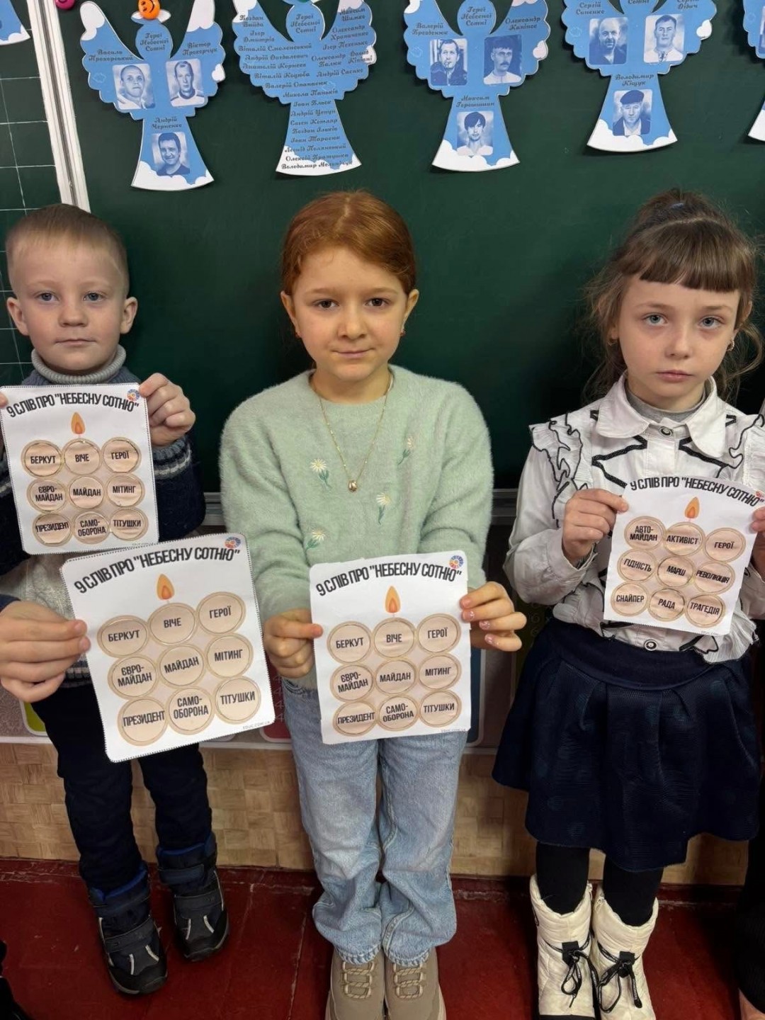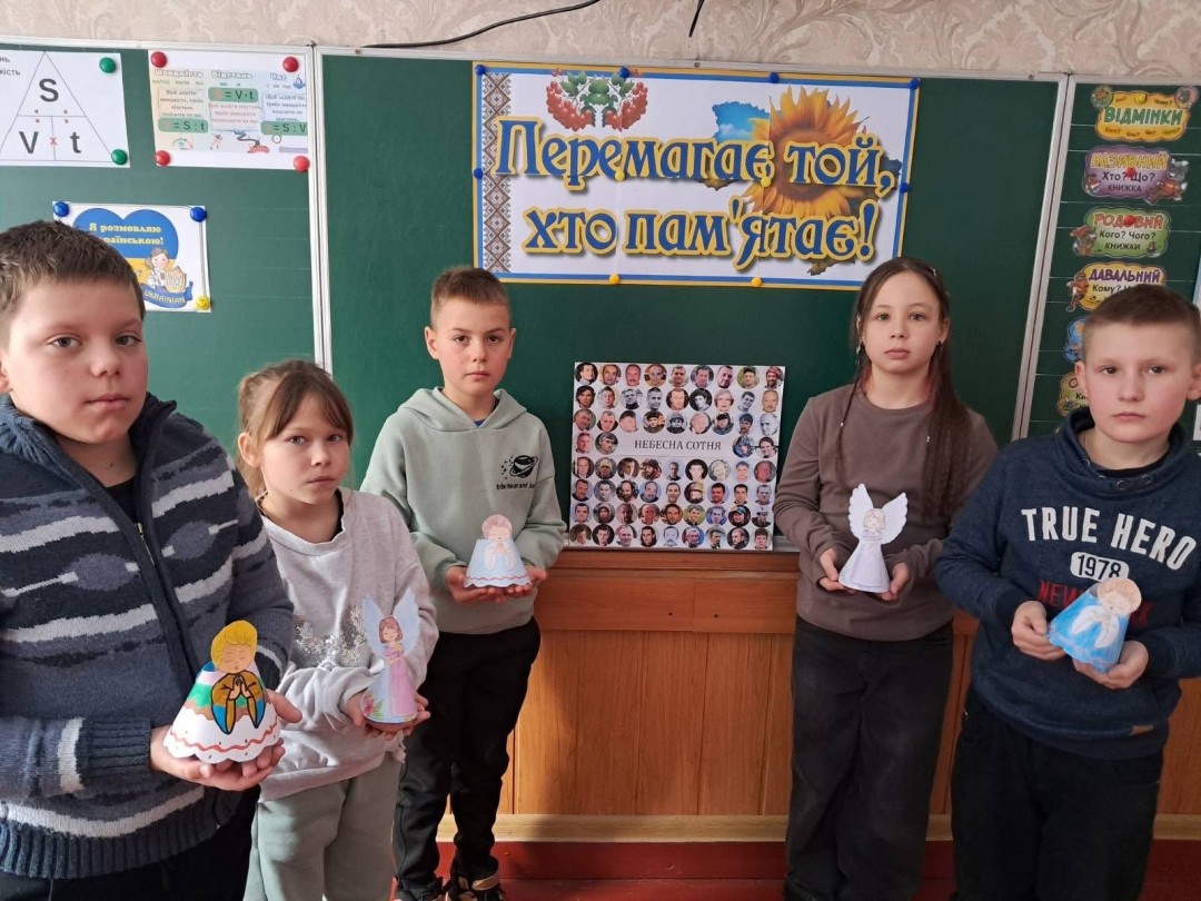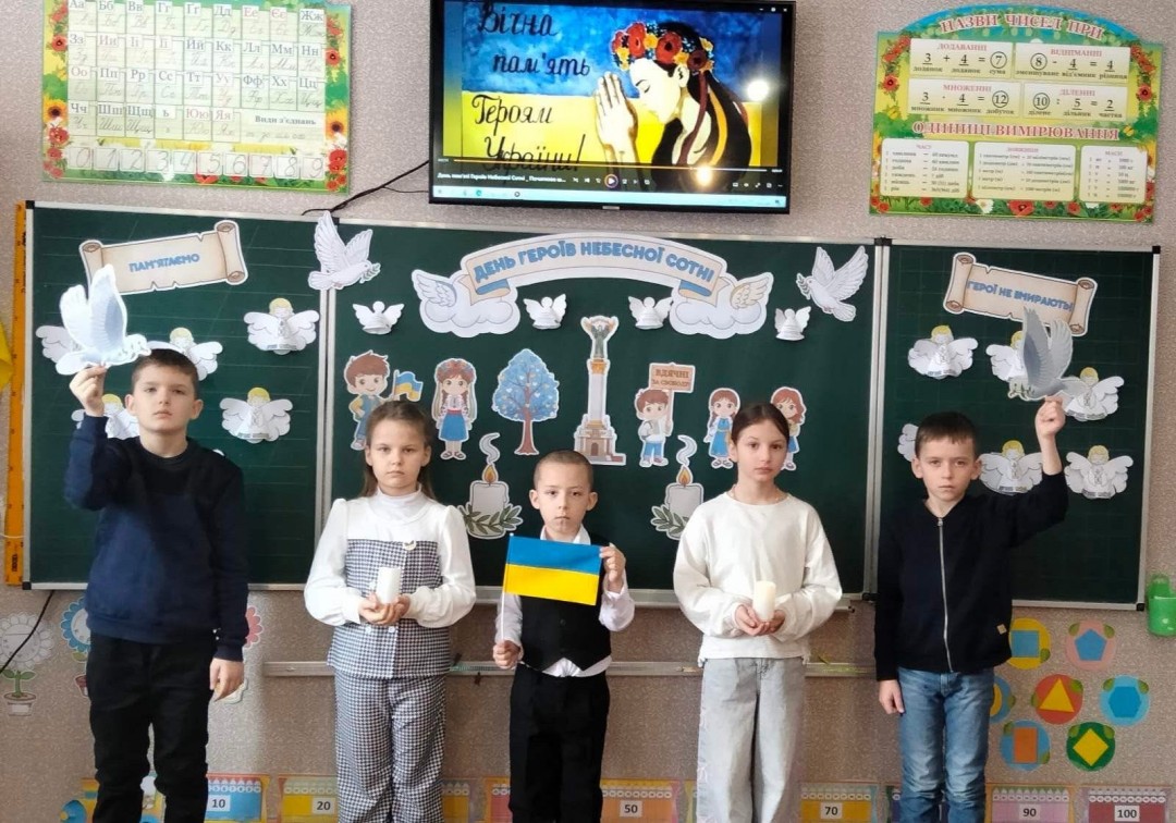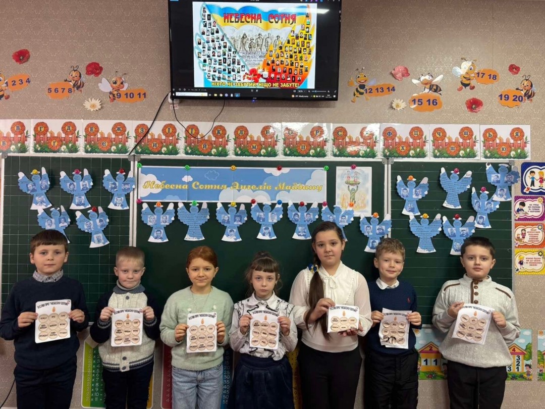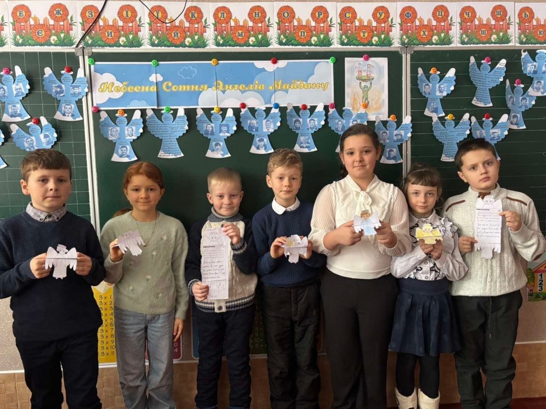 Сьогодні у стінах рідної школи ми згадуємо Героїв Небесної Сотні, відважних патріотів. Небесна Сотня — це 107 Героїв, серед яких громадяни України, Білорусі та Грузії, віком від 17 до 82 років.